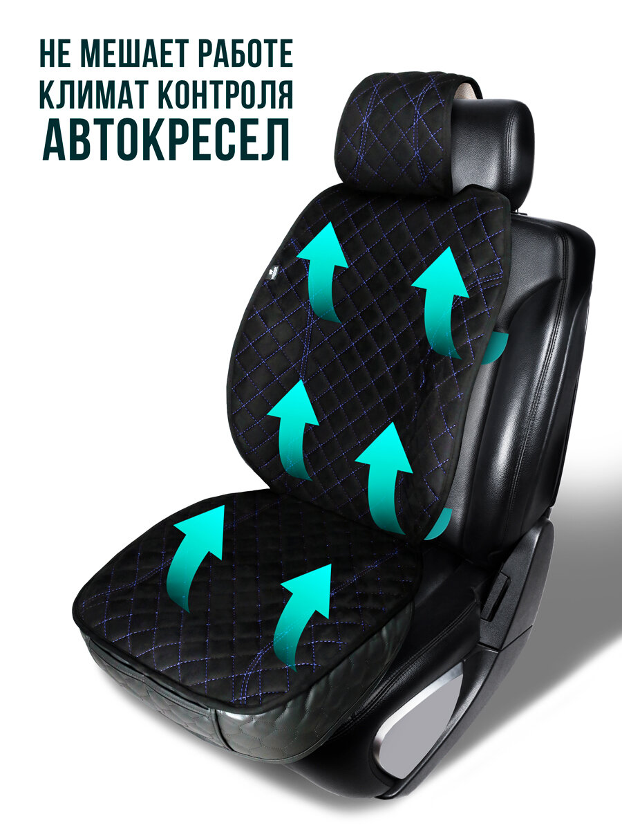 BARASHKOV/ Накидка из алькантары на переднее сиденье автомобиля. Модель XL/ черный, синяя строчка