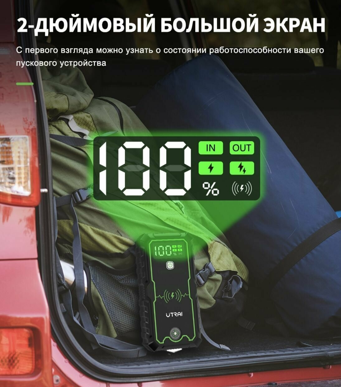 Портативное пусковое зарядное устройство UTRAI 2000A для автомобиля/ Power Bank/ ПЗУ/ Пускач