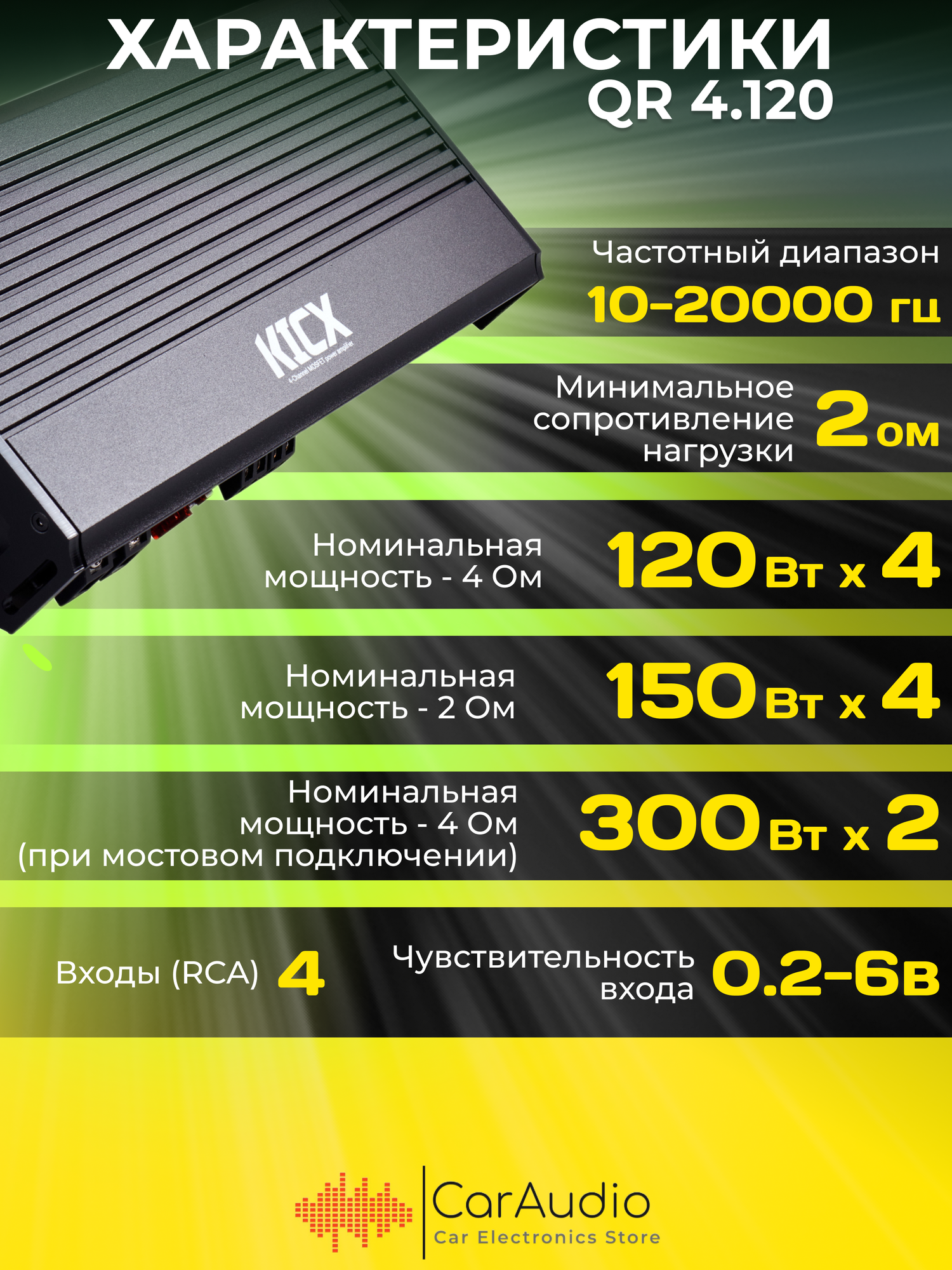 Автомобильный усилитель Kicx QR 4.120 интересное: