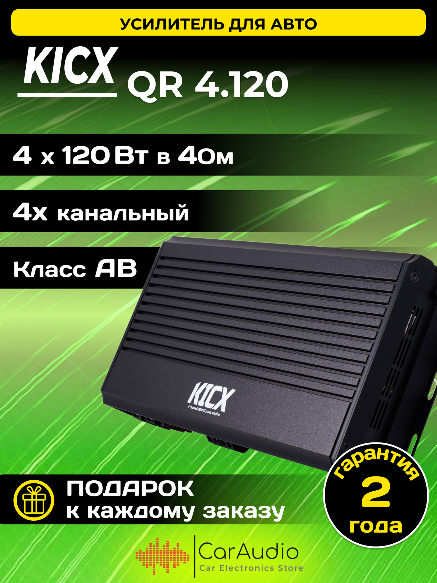Автомобильный усилитель мощности QR 4.120 Kicx 4-х канальный усилитель