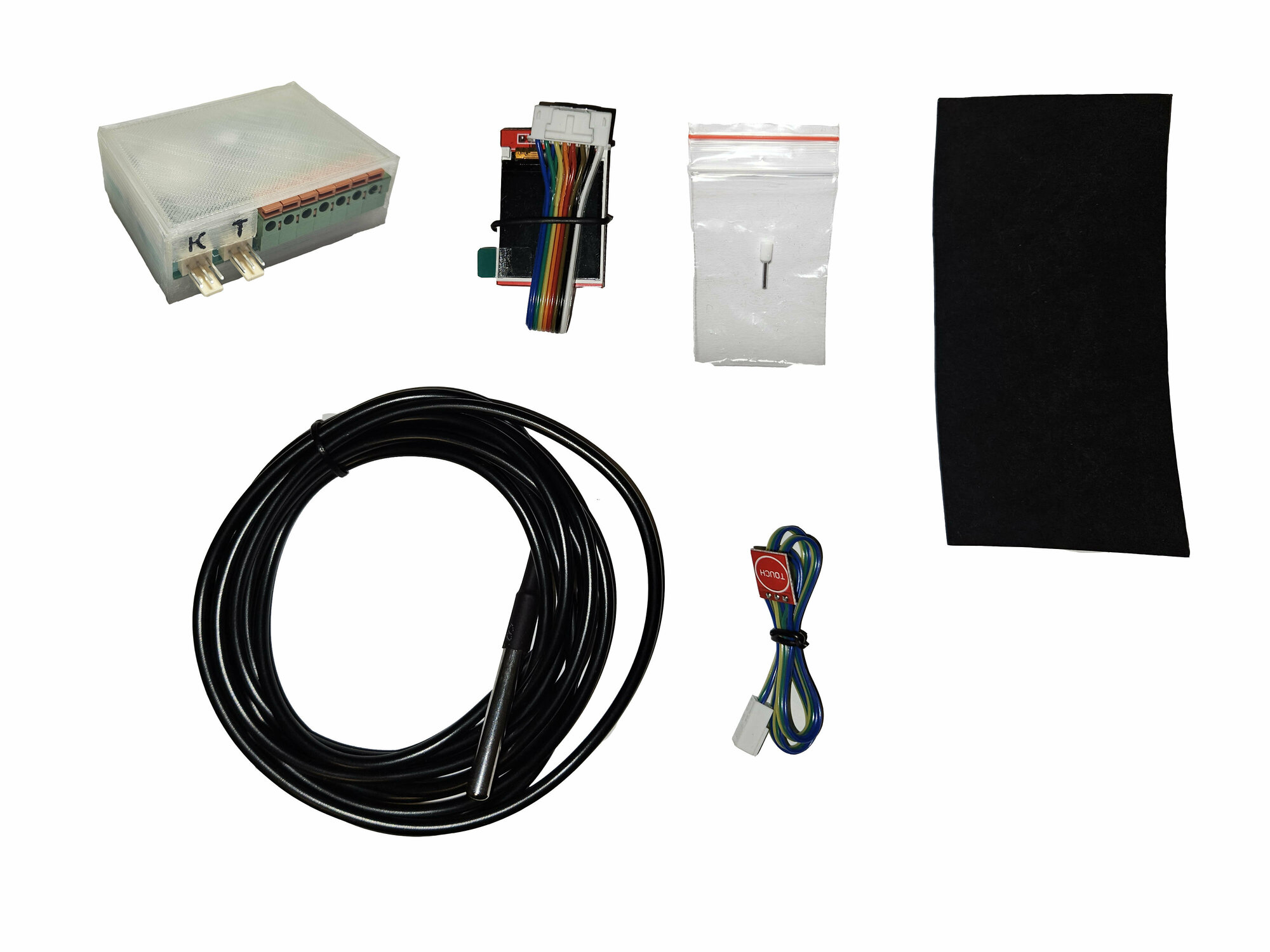 | Комплектация | TFT экранчик, сенсорная кнопка, датчик температуры, контакты под обжим для основного разъёма, основной блок, черный картон для рамки дисплея |