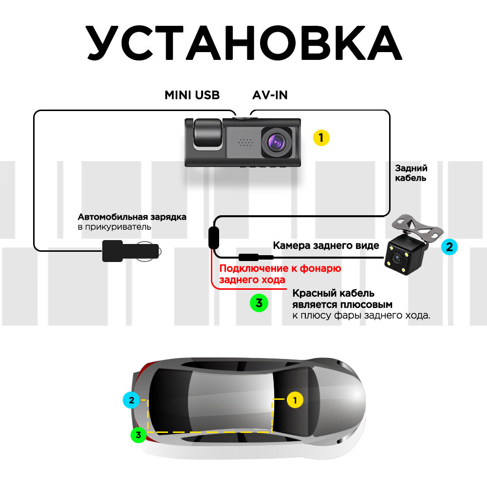 Купить видеорегистратор для автомобиля 3 камеры датчик движения G-сенсор черный S&H Electronics TF-карты на 32 Гб автовизитка
