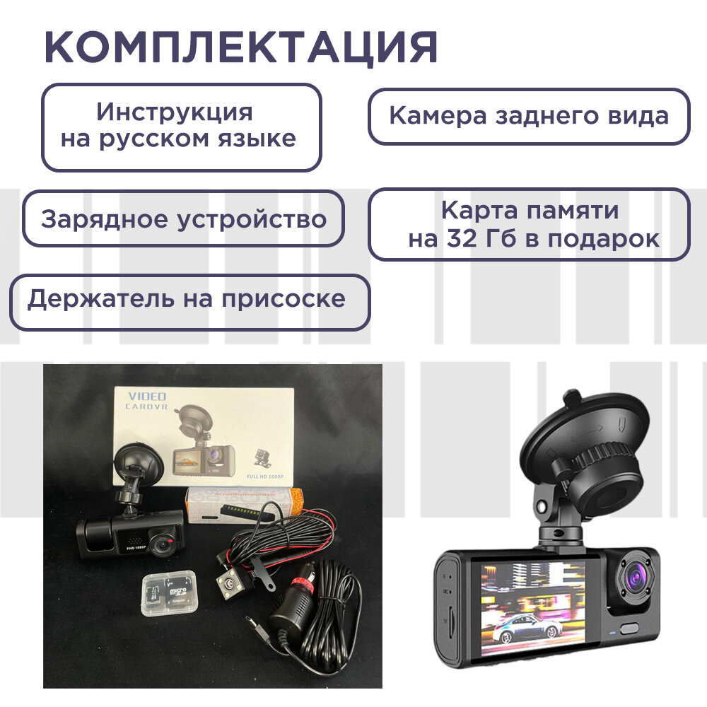 Автомобильный видеорегистратор 3 камеры датчик движения G-сенсор черный S&H Electronics TF-карты на 32 Гб автовизитка