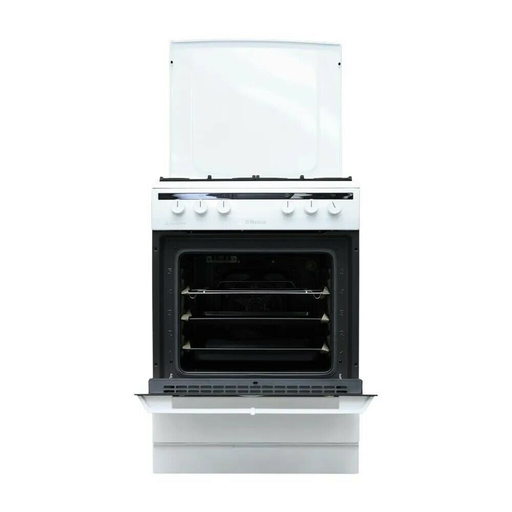 Газовая плита Hansa FCMW680250, электрическая духовка, металлическая крышка, чугун, белый