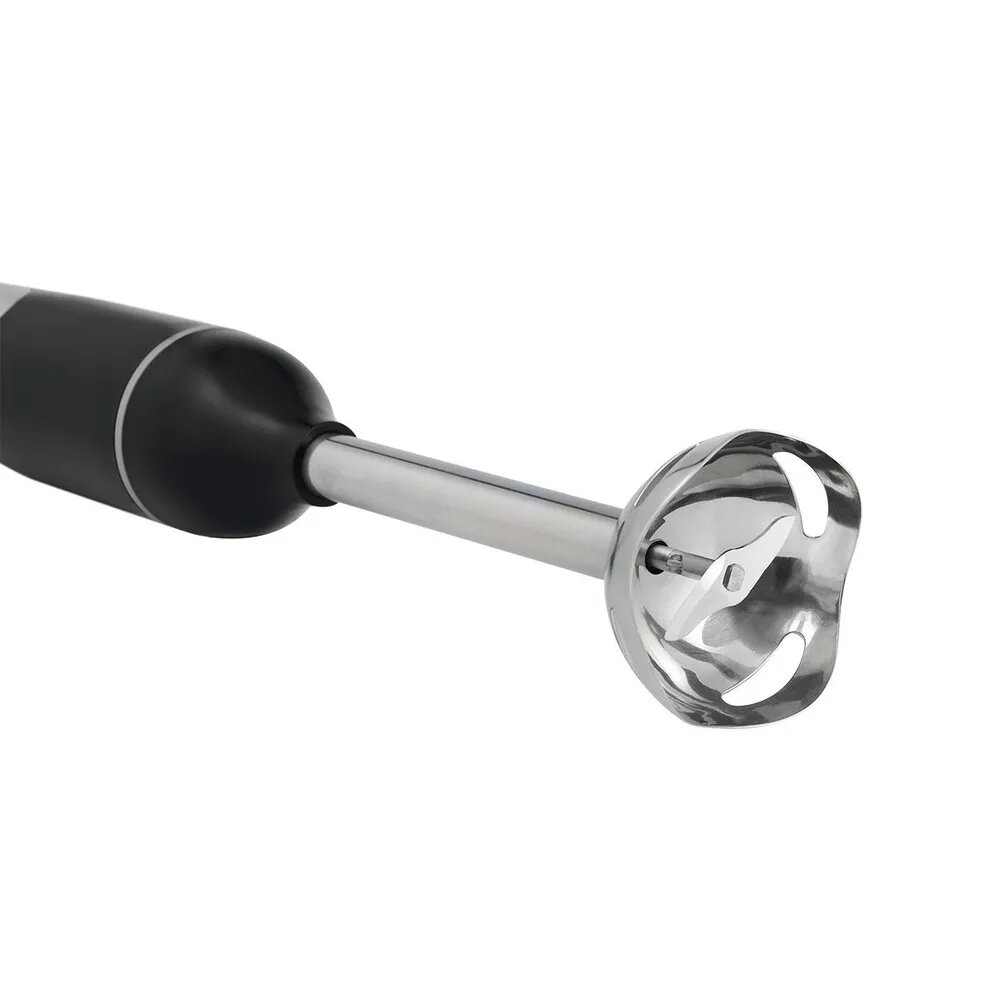 Мощности мотора достаточно, чтобы за считанные секунды измельчать различные продукты. Быстрому измельчению также способствуют острые и прочные ножи из нержавеющей стали. Производителем предусмотрено четырнадцать скоростных режимов подходящих под различные виды продуктов. Тонкая и эргономичная рукоятка упрощает удержание блендера при эксплуатации.