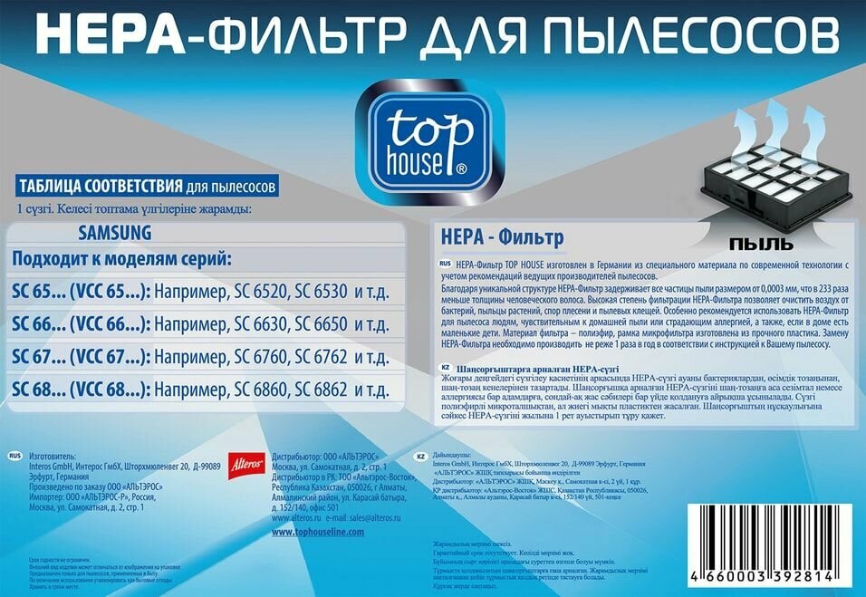 Hера-Фильтр Top house TH 001SM для пылесосов SAMSUNG 1шт интересное: