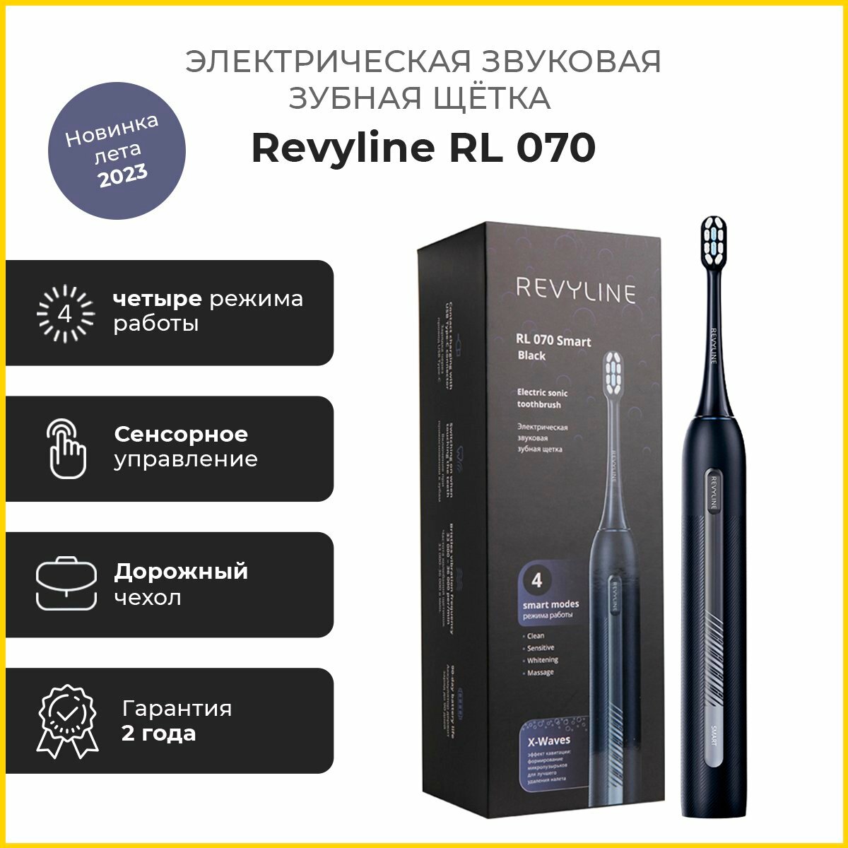 Электрическая звуковая щетка Revyline RL 070 черная + Зубная паста Revyline Smart, 75 г.
