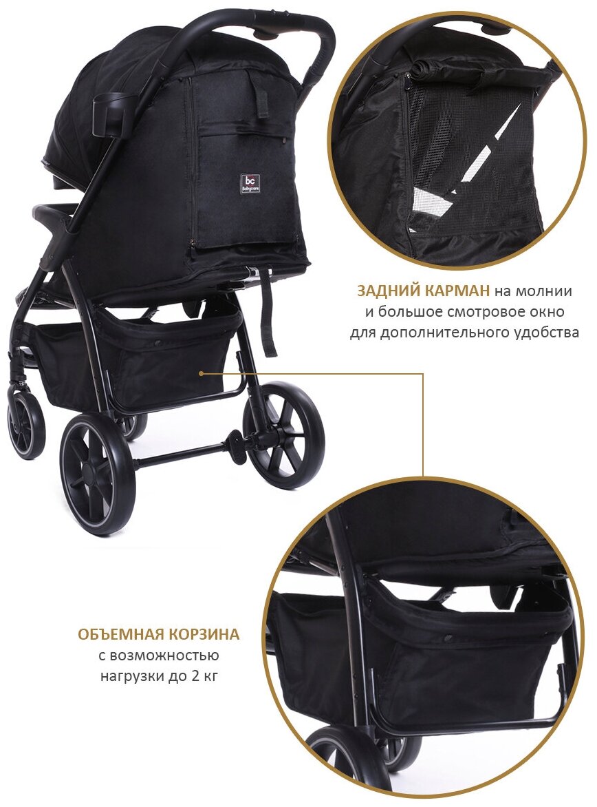 Коляска прогулочная Babycare Venga всесезонная, с накидкой на ноги и капюшоном, черное золото