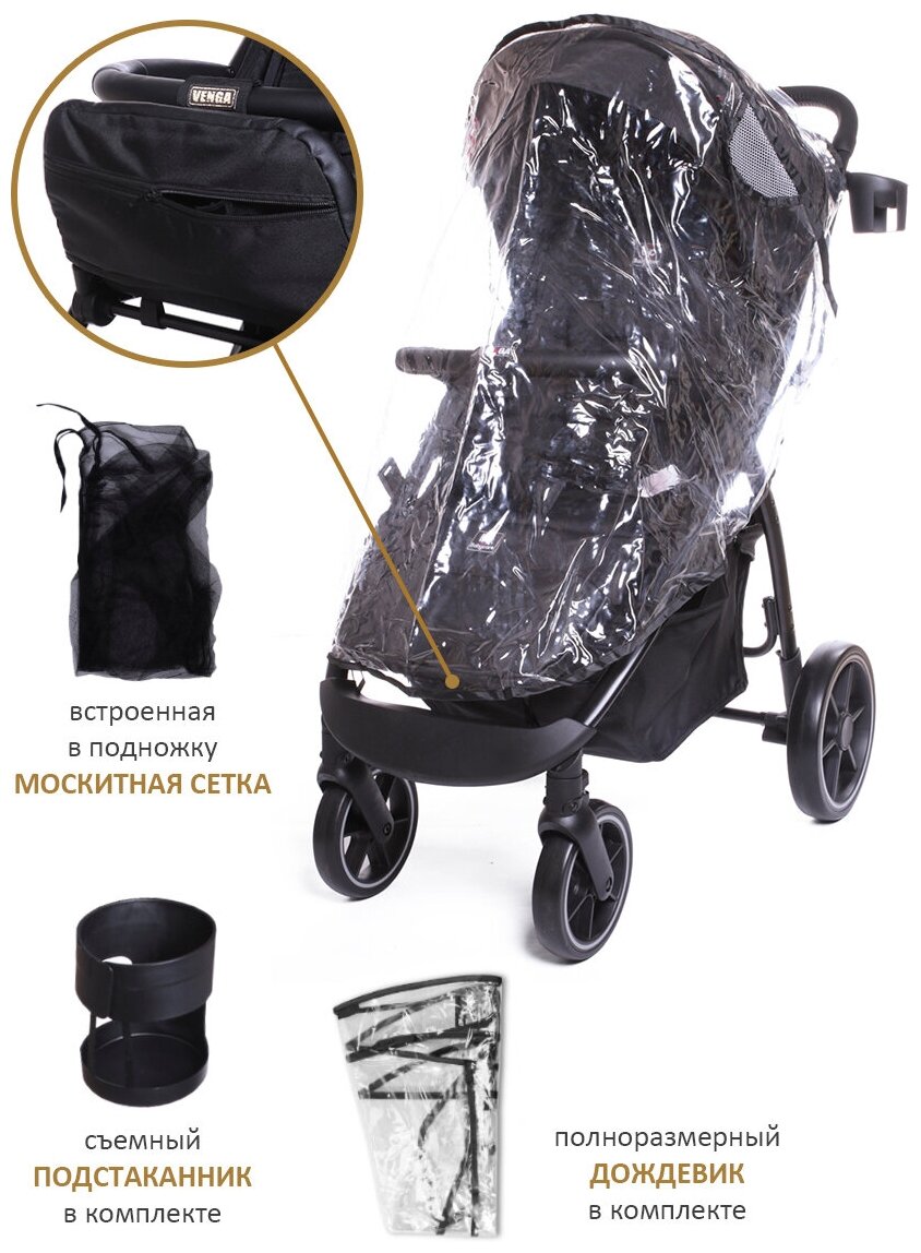 Прогулочная коляска Venga Babycare с накидкой на ноги и дождевиком