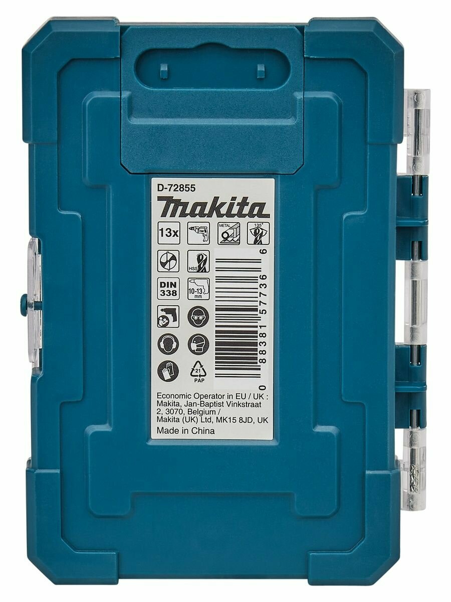 Набор сверл по металлу Makita HSS-TiN Economy, 13 шт. (1.5-6.5 мм, шаг 0.5 мм) (D-72855)