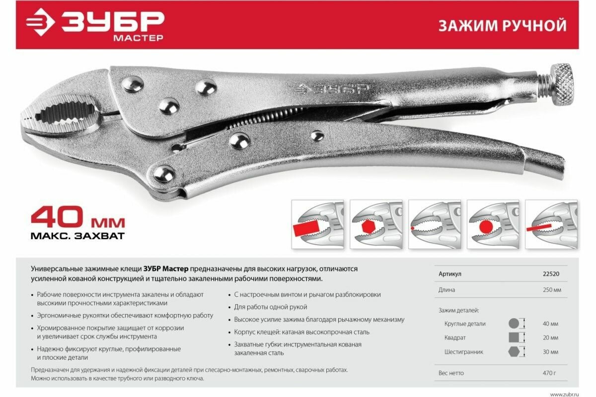 Ниже Вы можете прочитать отзывы на Зажим ручной ЗУБР 250мм, ознакомится с подробными характеристиками, посмотреть интересные обзоры и фотографии на Зажим ручной ЗУБР 250мм.
