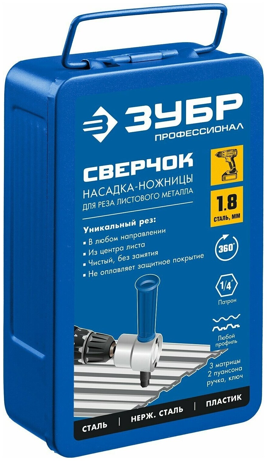 Ножницы-насадка для реза листового металла + запчасти. в металл. кейсе ЗУБР интересное: