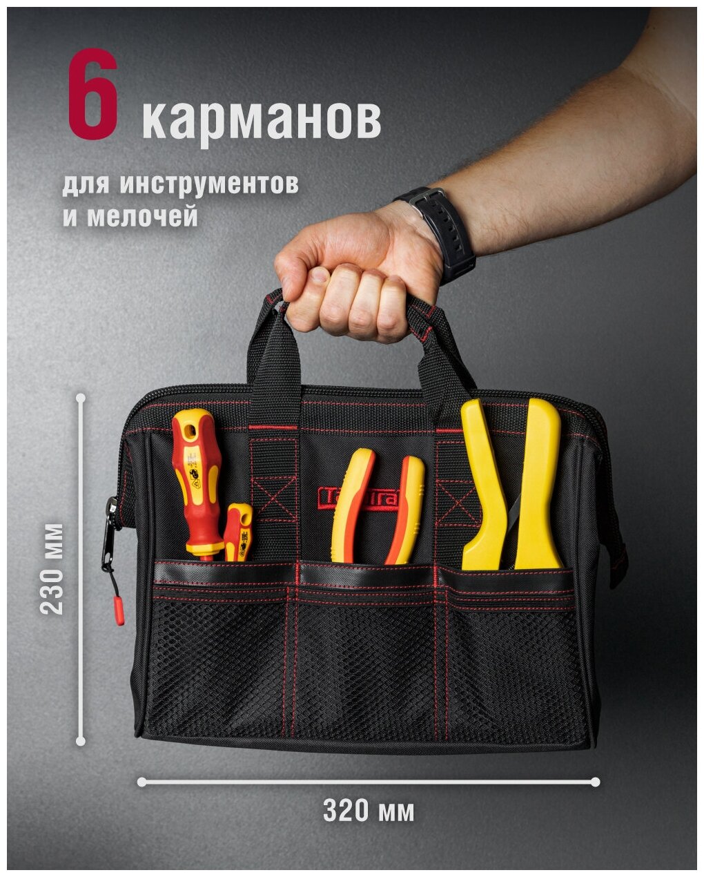 СохранитьСумка для инструмента Tamirat TTTA-Bag04 с ножками, размер 320*210*230 мм интересное: