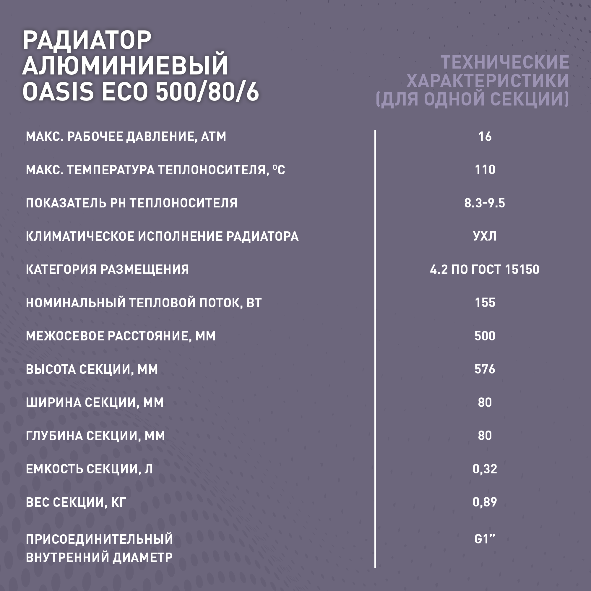 Алюминиевый секционный радиатор Oasis ECO 500/80/6