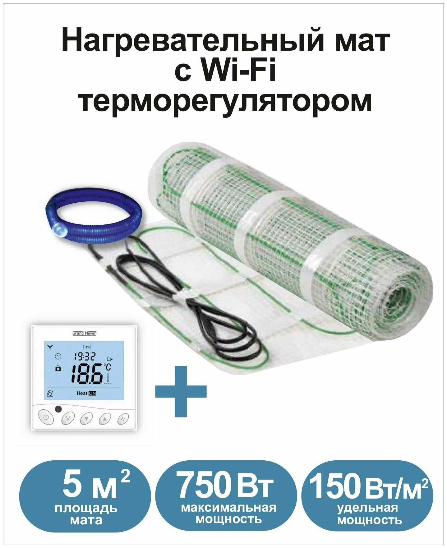 Купить Нагревательный мат, Грейка, 750-5,0 150 Вт/м2 с программируемым терморегулятором с Wi-Fi, 5,0 м2, 1000х50 см