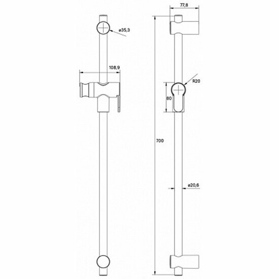 штанга душевая IDDIS Ray 700мм сталь черная матовая