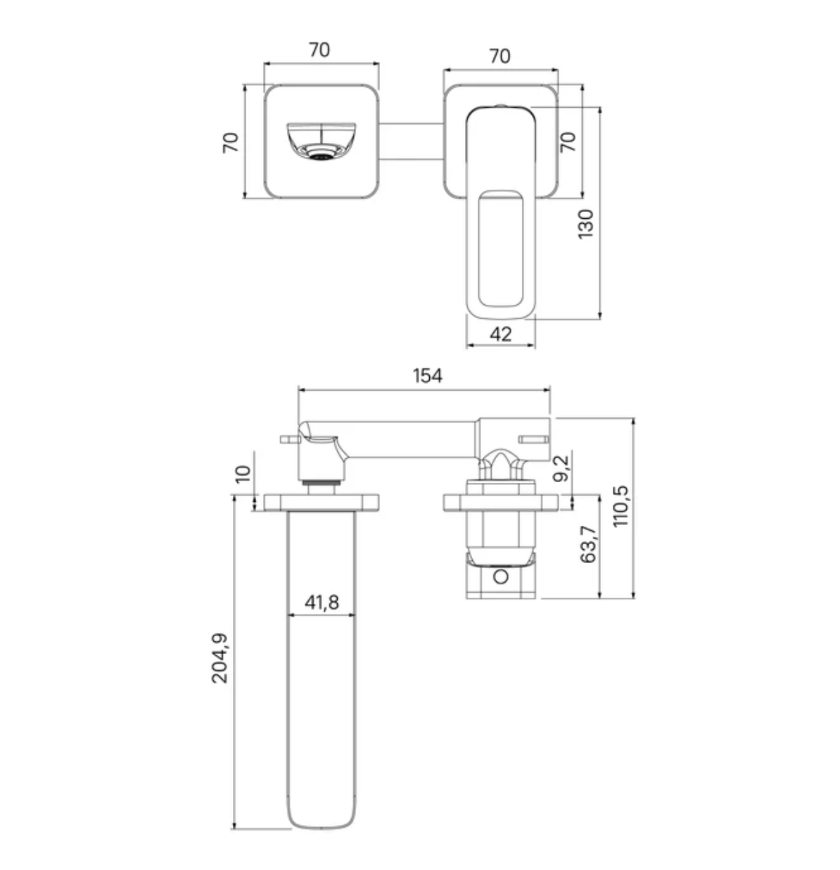 | Длина излива | 195 мм |