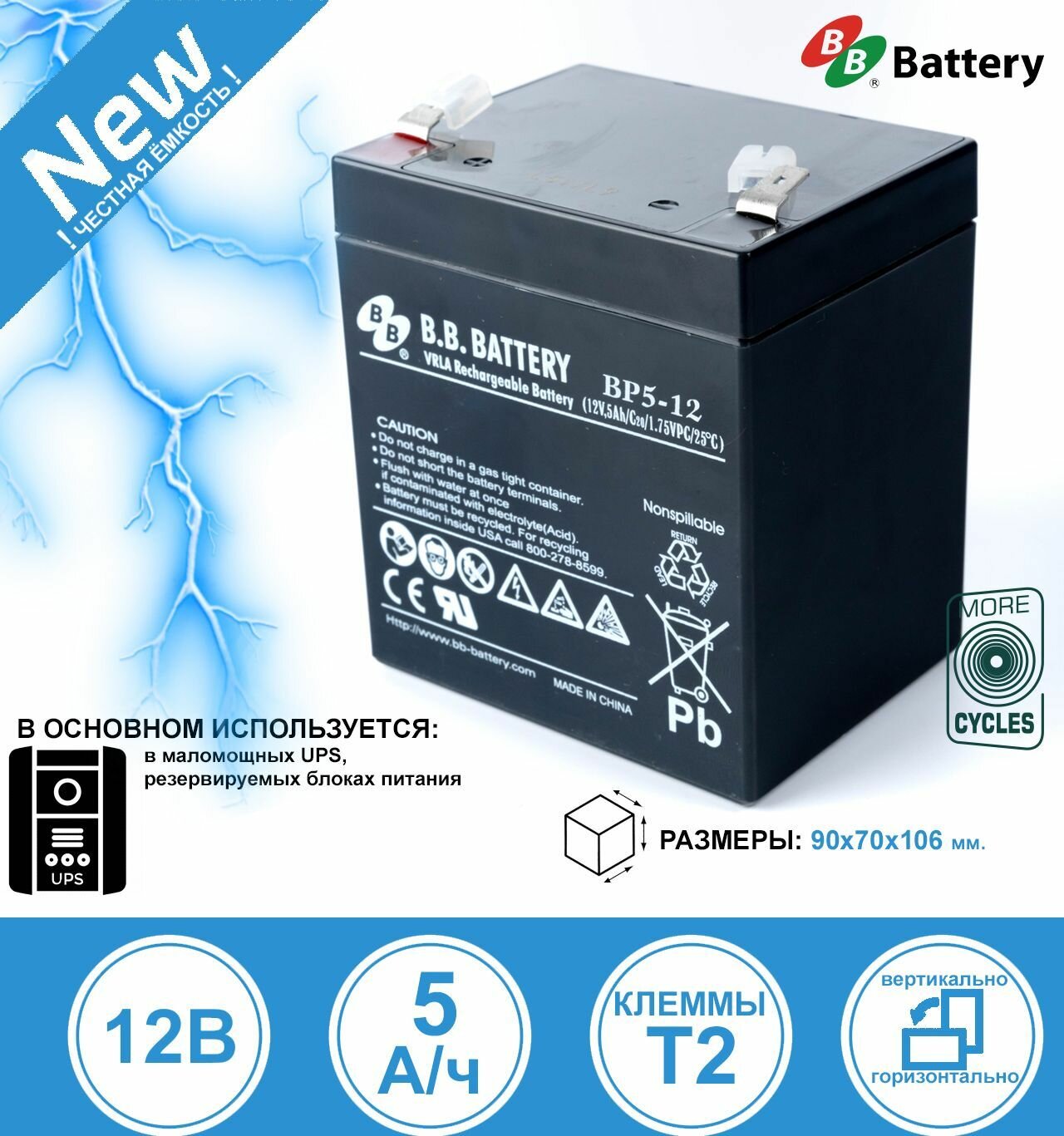 1шт. - Аккумулятор 12В 5Ач / B.B.Battery; арт. BP 5-12; оригинал / - комплект 1шт
