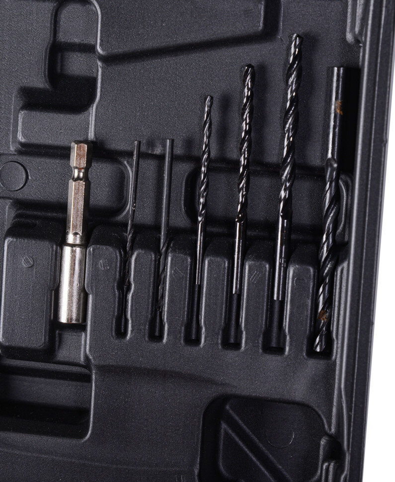 | Подробная комплектация | Дрель-шуруповерт Набор оснастки - 65 предметов 2 аккумулятора Зарядное устройство Кейс |