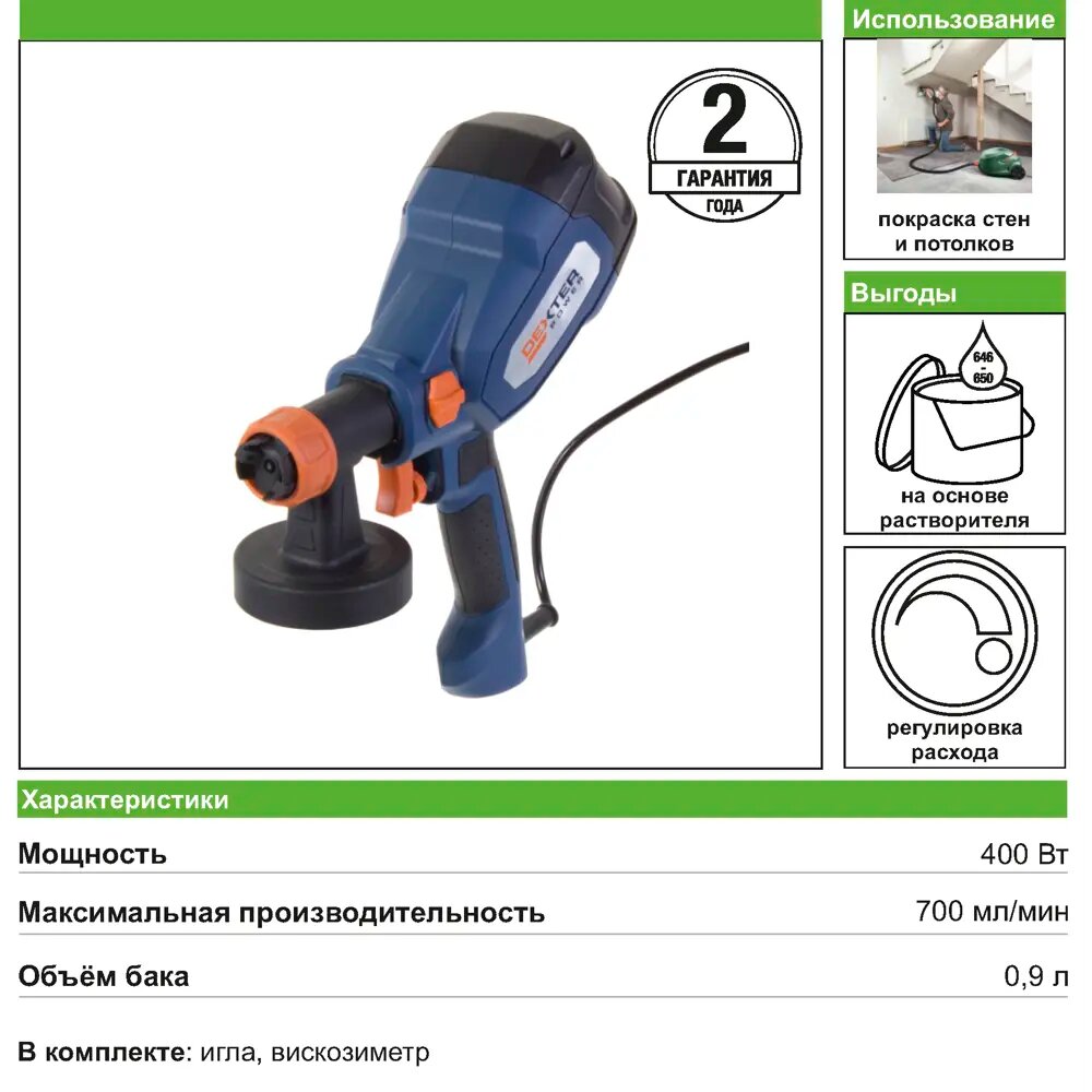 Краскопульт Dexter PLD3120, 400 Вт, 700 мл/мин. интересное: