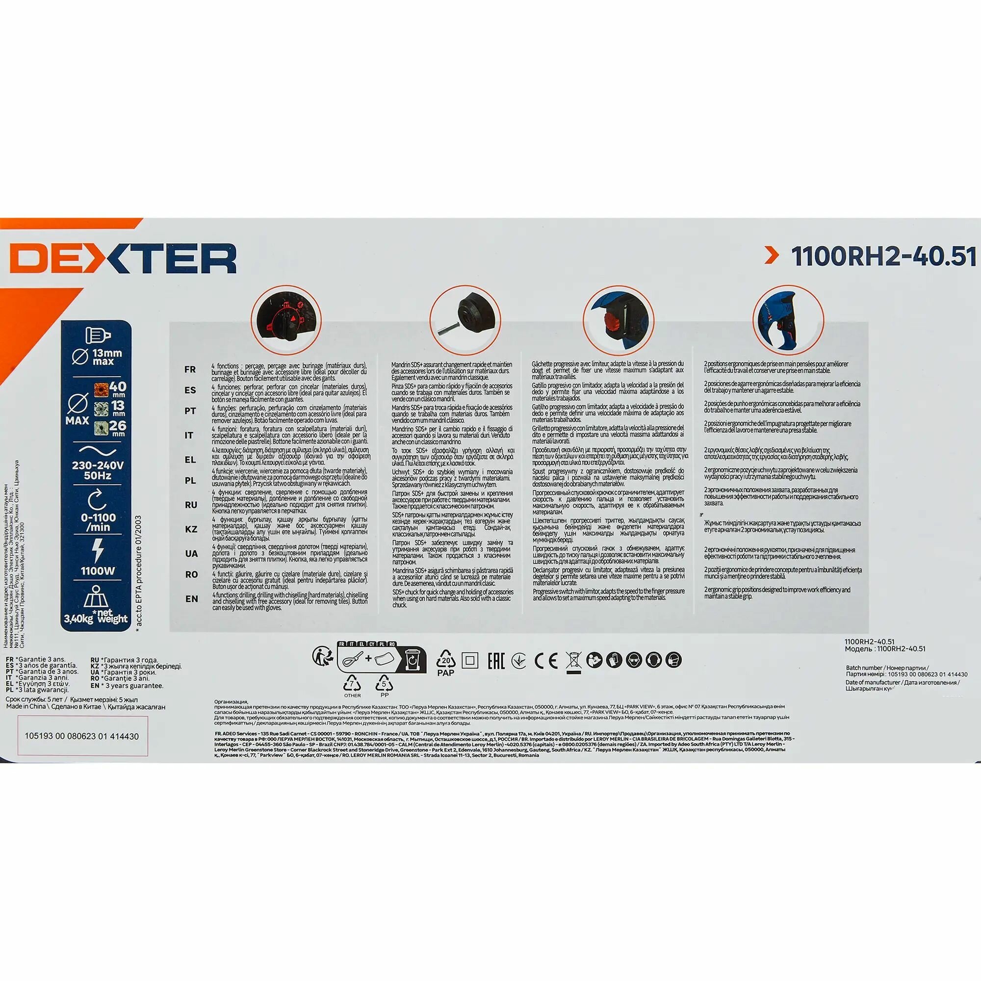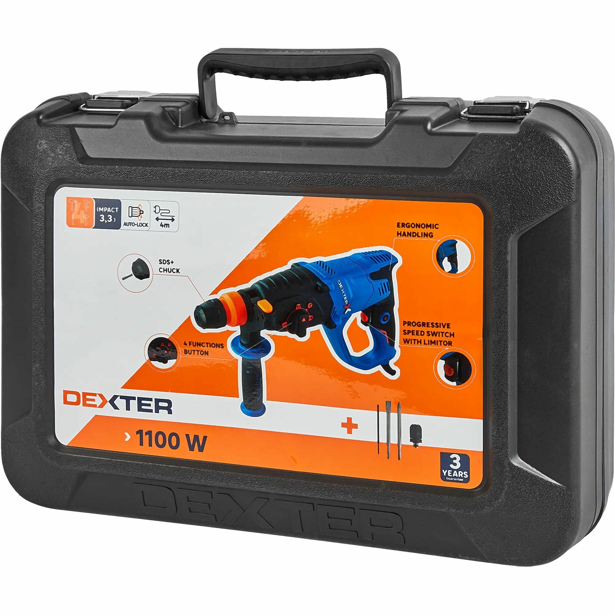 Перфоратор сетевой, SDS-plus, Dexter 5, 1100RH2-40.51, 1100 Вт, 3.3 Дж интересное: