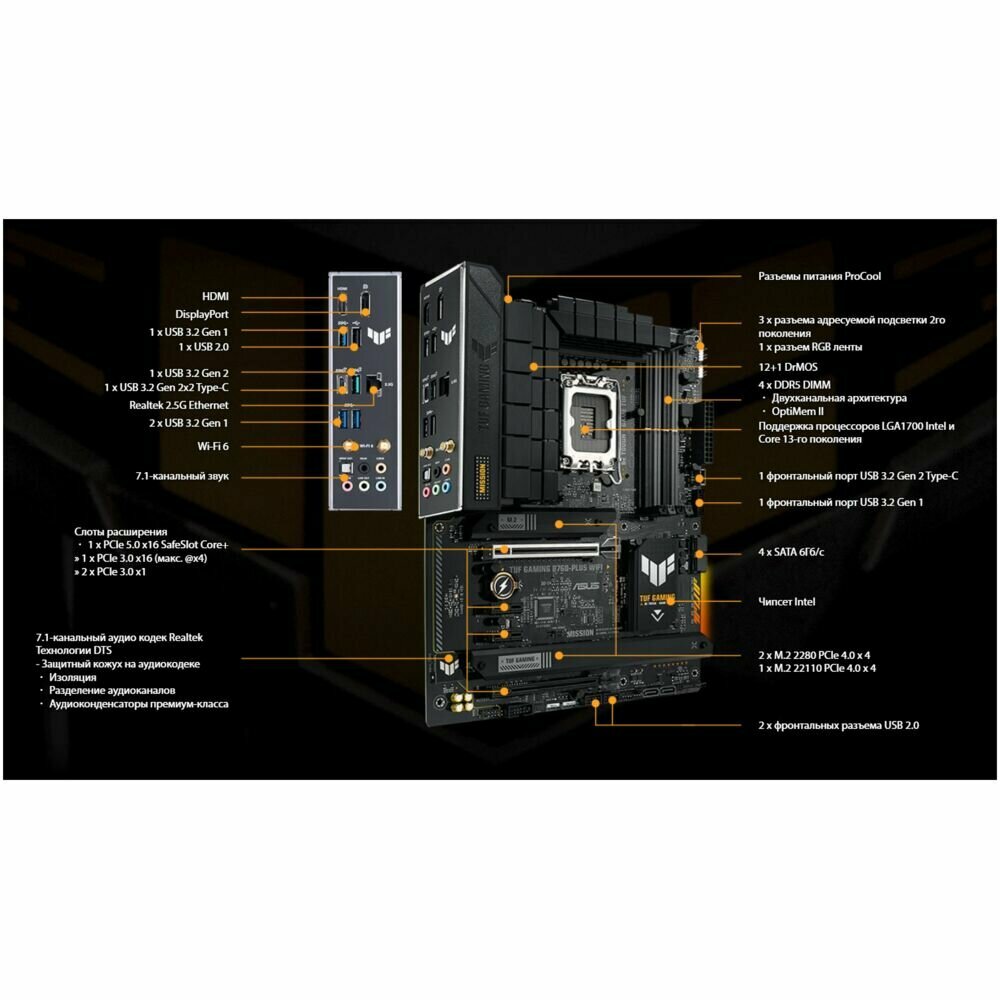 Ниже Вы можете прочитать отзывы на Материнская плата Asus TUF Gaming B760-PLUS WIFI (LGA1700, ATX), ознакомится с подробными характеристиками, посмотреть интересные обзоры и фотографии на Материнская плата Asus TUF Gaming B760-PLUS WIFI (LGA1700, ATX).