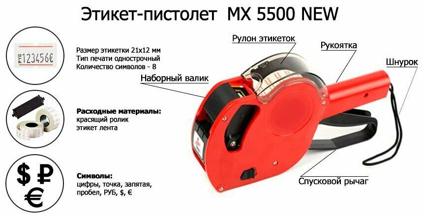 Однострочный этикет-пистолет MX-5500 EOS интересное: