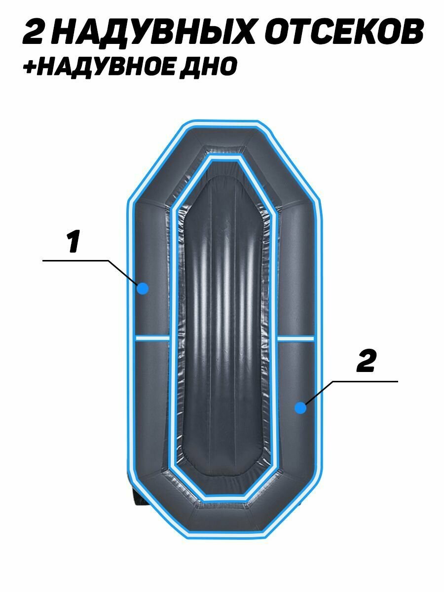 Лодка надувная для рыбалки Барс-260НД, двухместная, надувное дно, графит