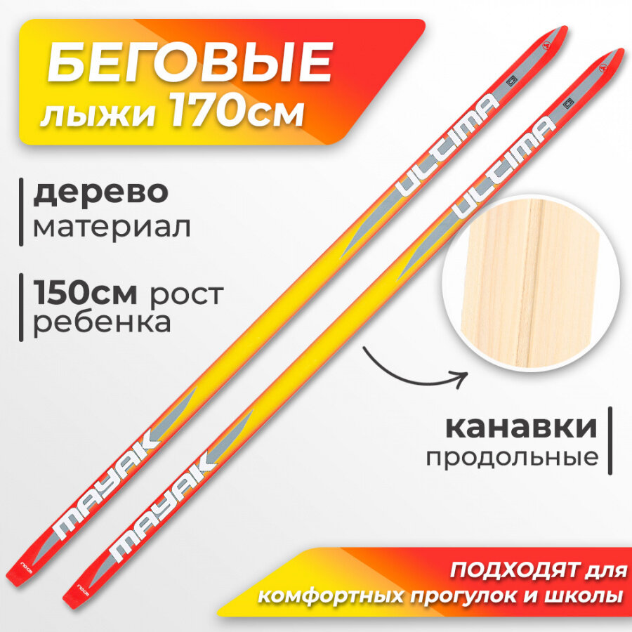 Купить Лыжи беговые подростковые Маяк 170 см деревянные красно-желтые