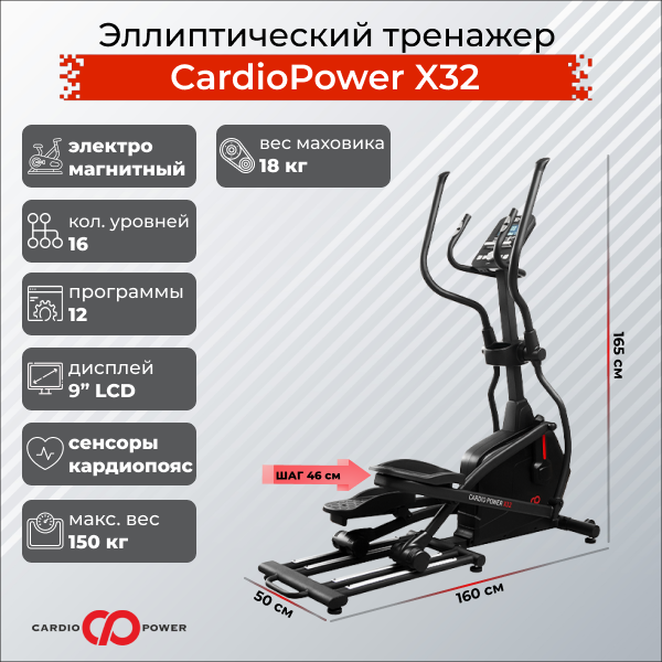 Эллиптический тренажер CardioPower X32, черный интересное: