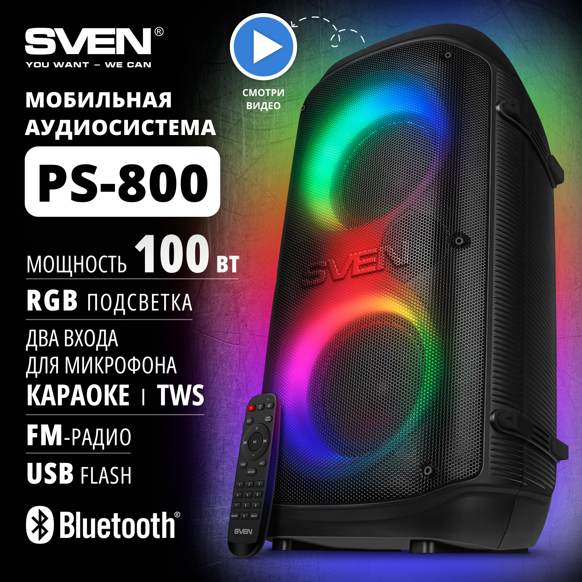 Портативная акустика SVEN PS-800, 100 Вт, черный