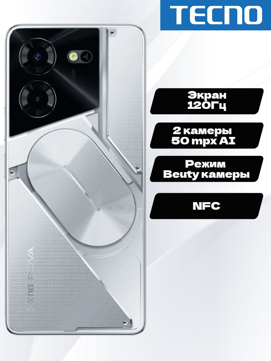 Смартфон TECNO Pova 5 Pro 5G (LH8N), 5G, 128 Гб, серебристый