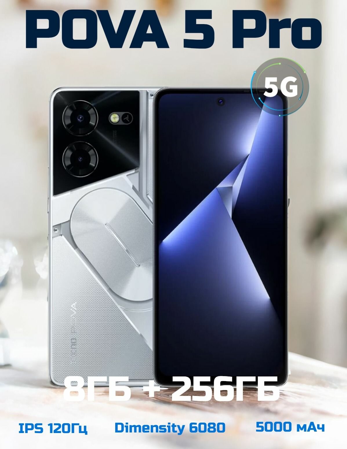 Смартфон TECNO POVA 5 Pro 5G 8/256 ГБ, 2 nano SIM, серебристый
