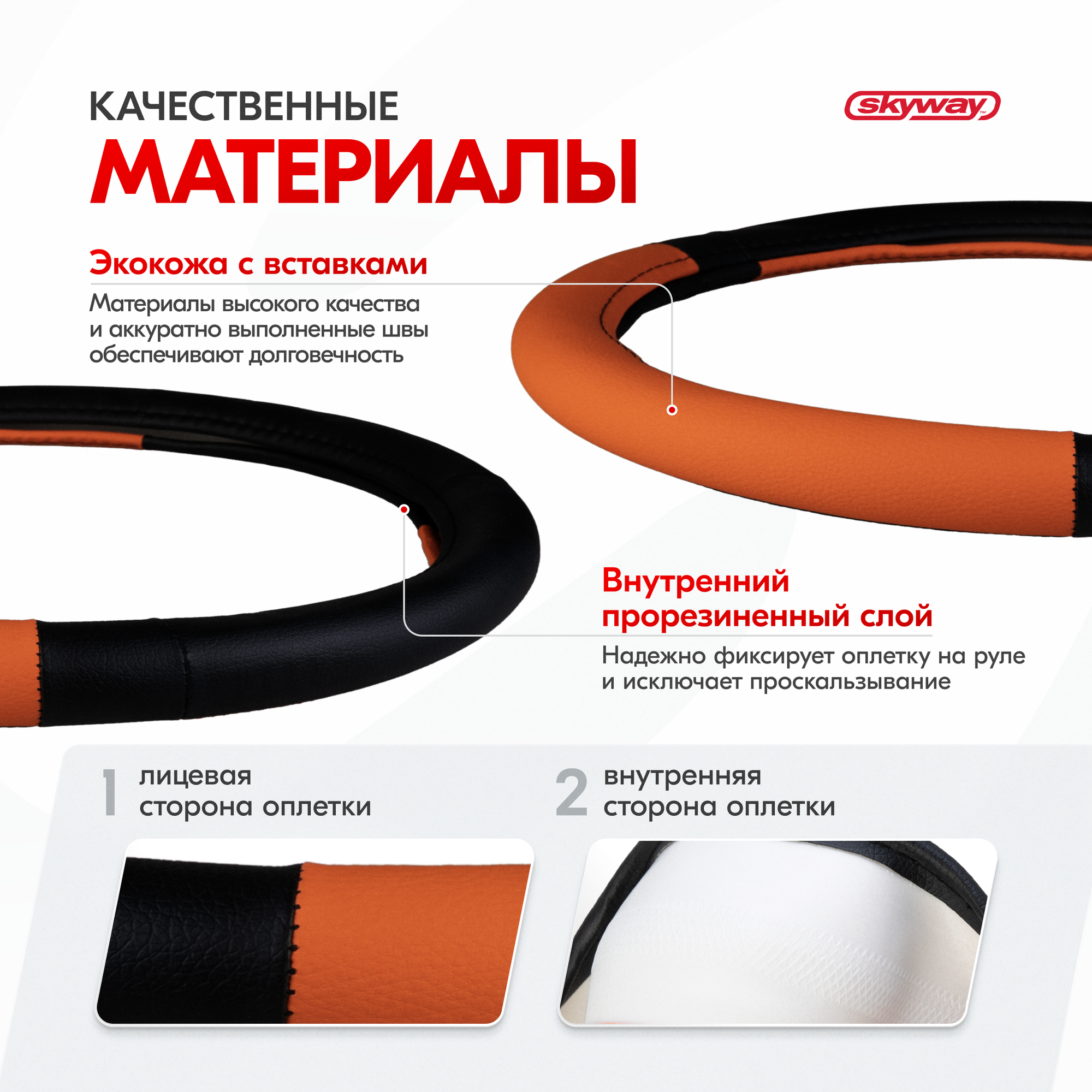 СохранитьОплетка на руль Combo-3 SKYWAY M (37-39) черный; оранжевый экокожа, S01102362 интересное: