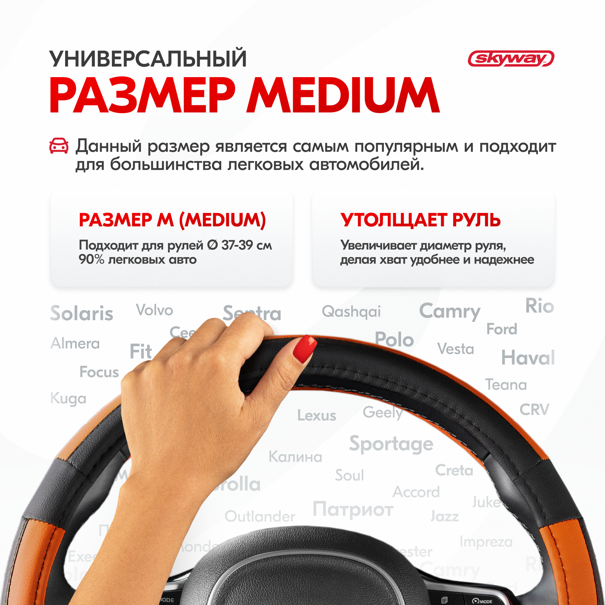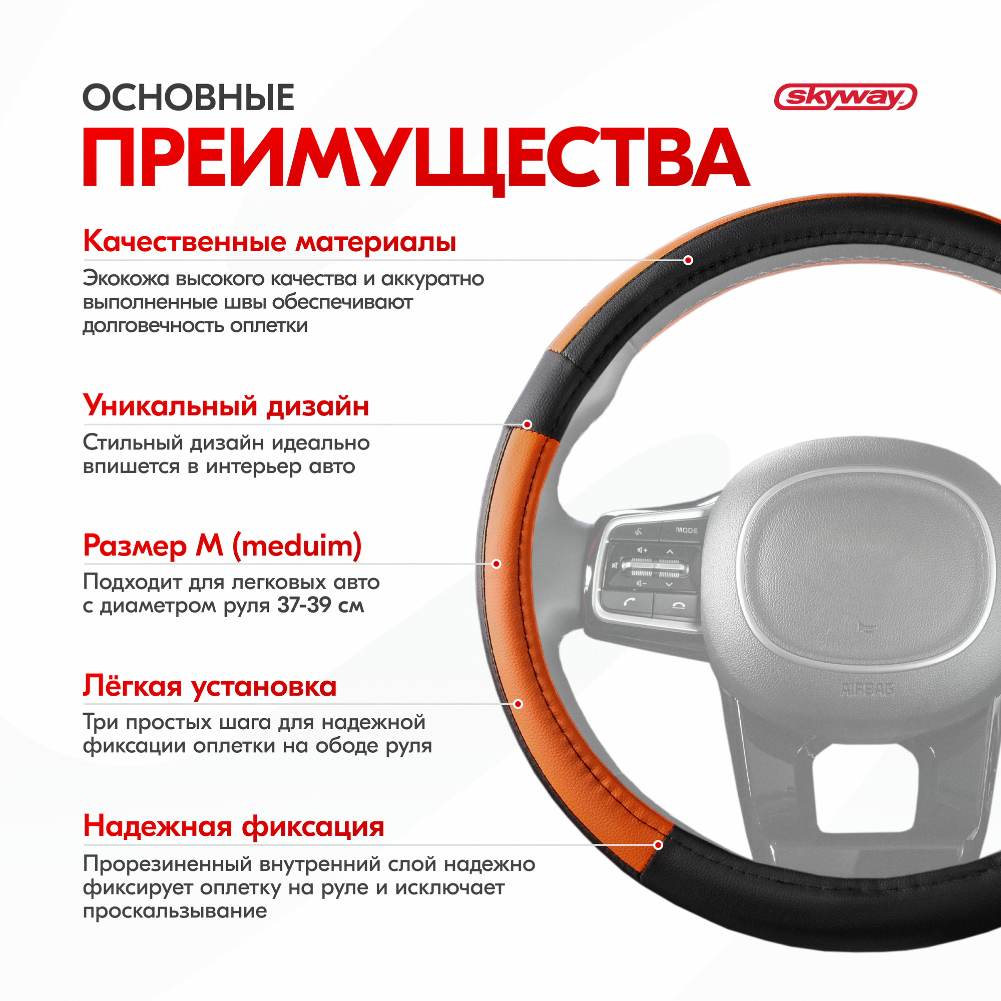 Купить Оплетка на руль Combo-3 SKYWAY M (37-39) черный; оранжевый экокожа, S01102362
