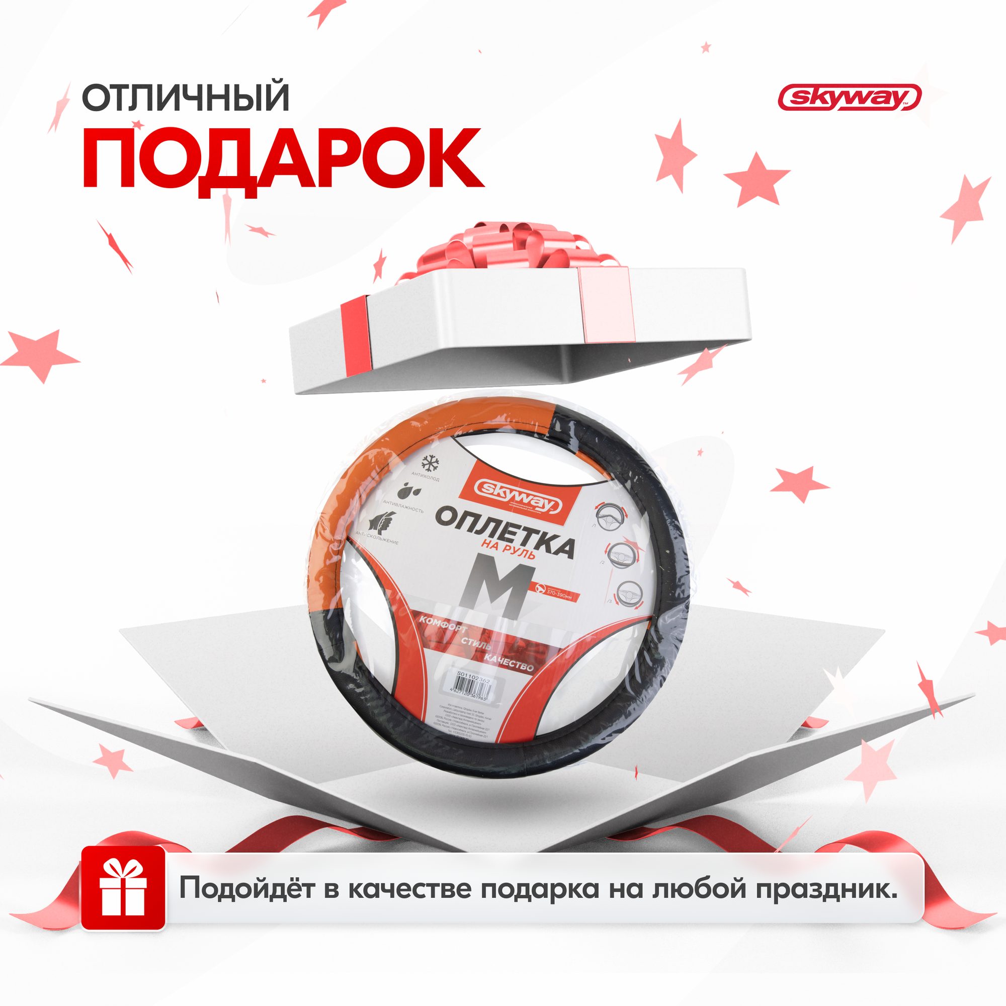 SKYWAY S01102059 Оплетка руля M 37-38см. экокожа Combo-2 Черно-Красная спорт SKYWAY (S01102059)