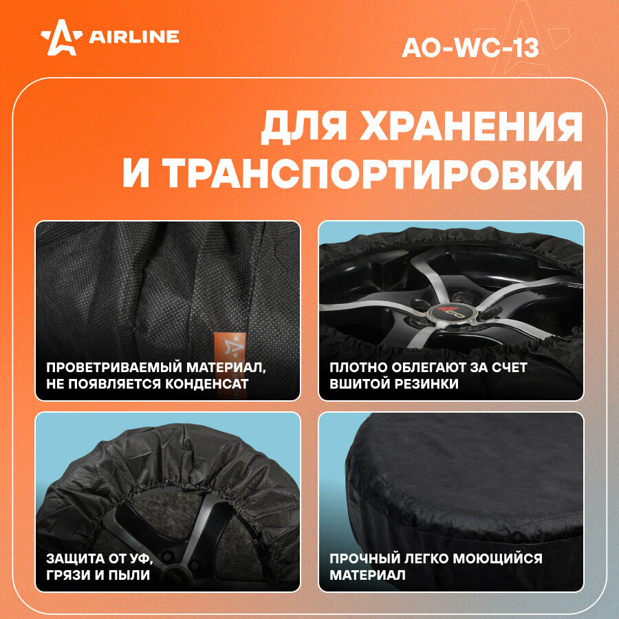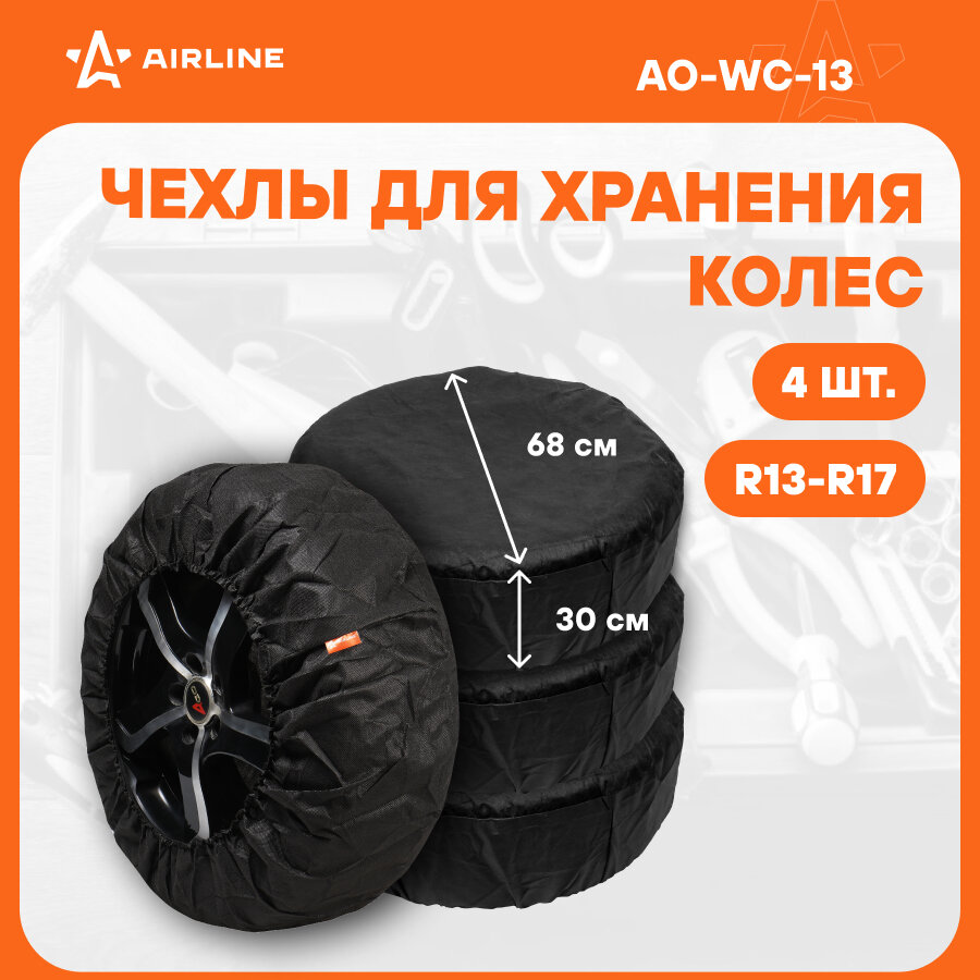 Чехлы Для Колес, Размер R 13-17, Без Ручек, Спанбонд, Комплект 4 Шт, Цвет Черный (Ao-Wc-13) AIRLINE арт. AO-WC-13