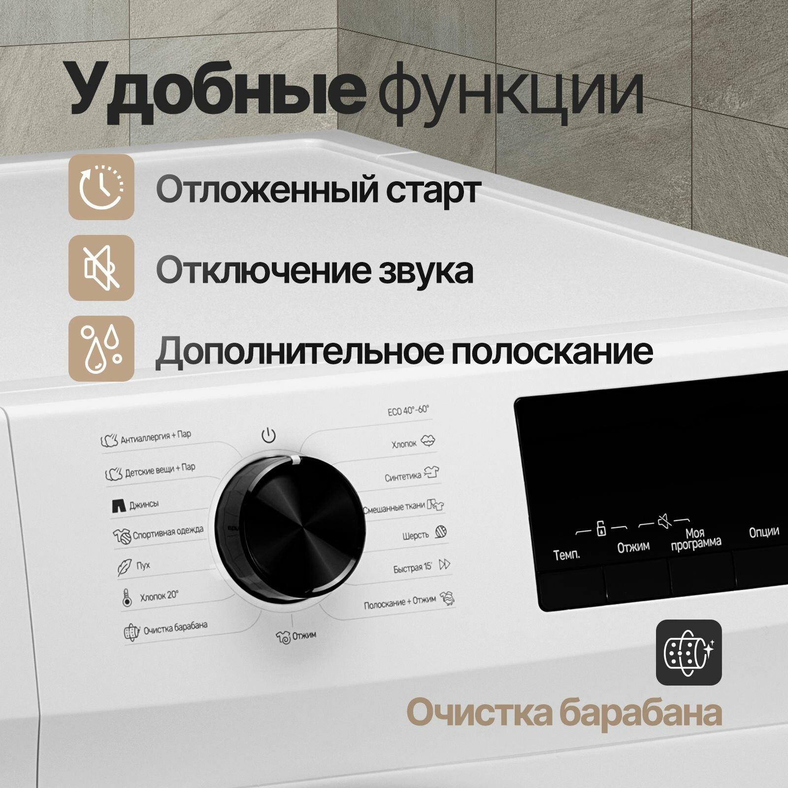 | Дополнительные функции | автовзвешивание / отложенный старт / очистка барабана / сигнал окончания стирки |