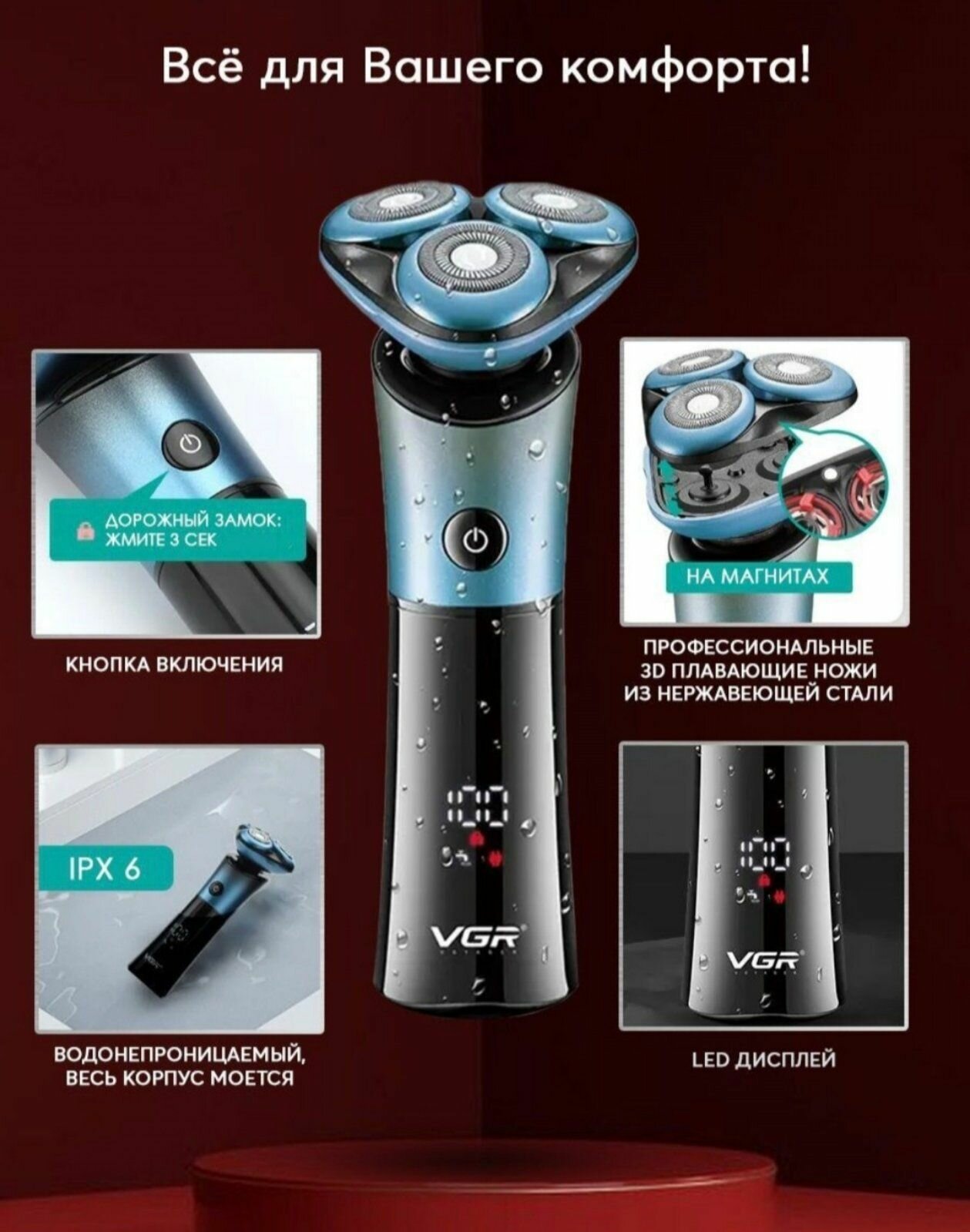 Электробритва мужская VGR V-326, роторная интересное: