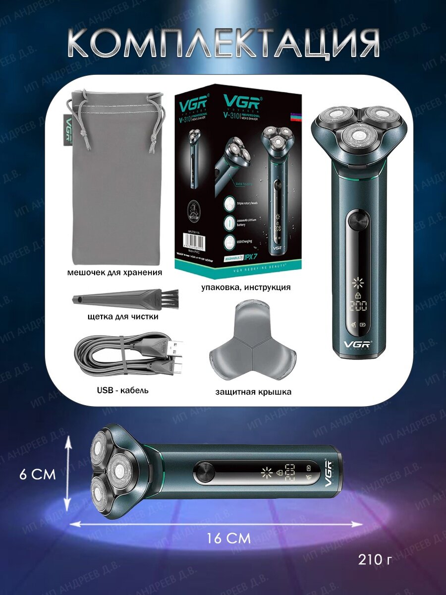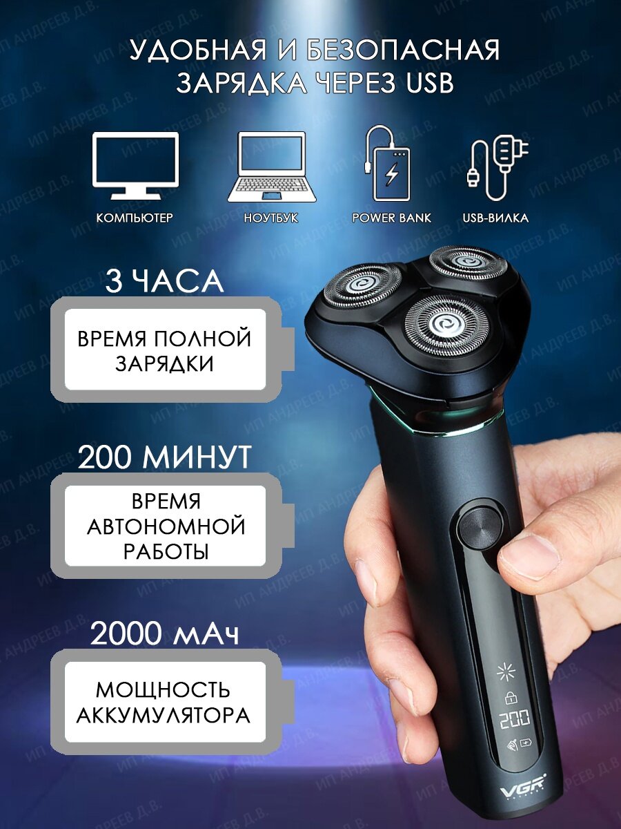 Электробритва электрическая мужская, аккумуляторная VGR v-310