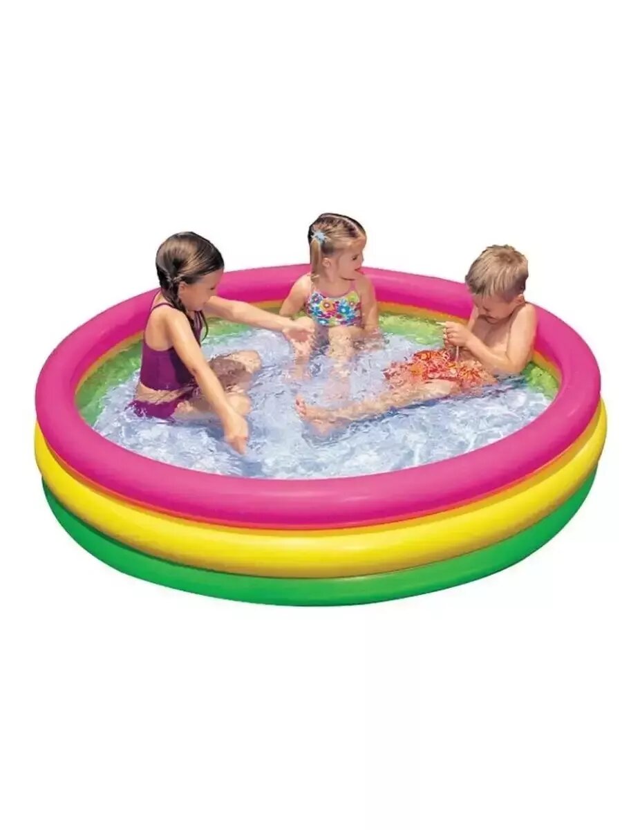 Бассейн надувной Радуга 114х25 см, с надувным дном, от 2 лет, без насоса, Intex 57412