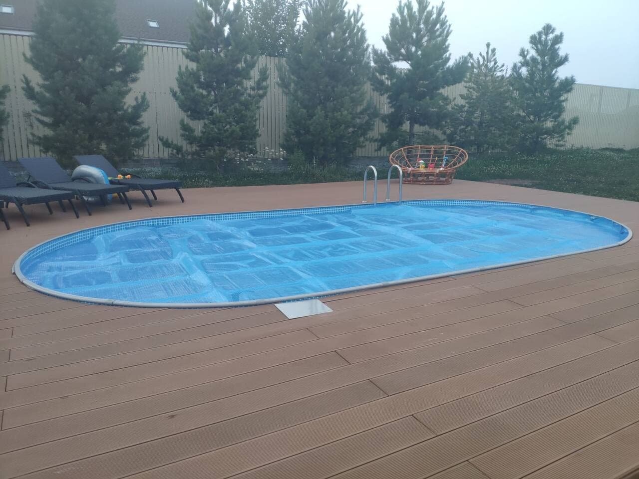 Бассейн лагуна овальный вкапываемый 3,5 х 2,5 х 1,25 м, Светлое дерево чаша 0,6 мм