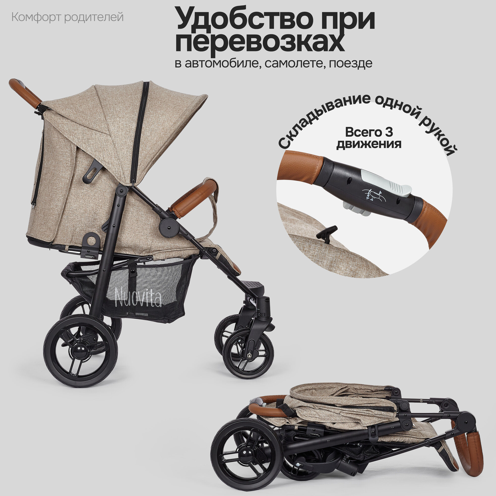 СохранитьКоляска прогулочная Nuovita Corso детская (Кофейный/Черный) интересное: