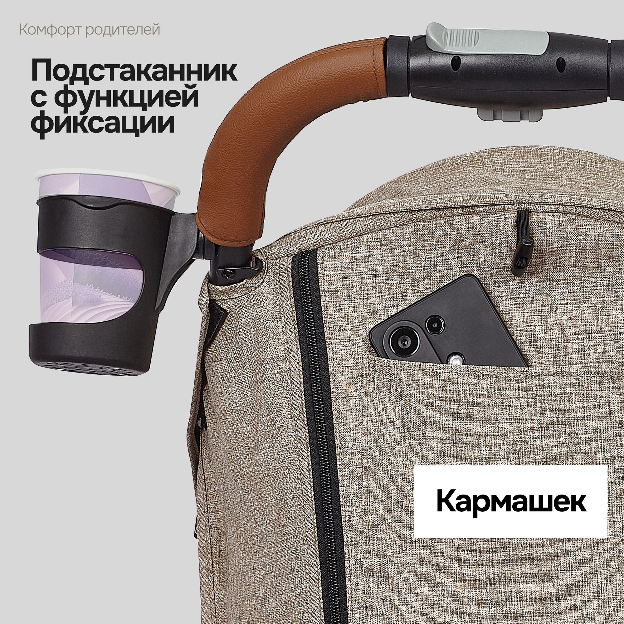 | Комплектация | коляска с прогулочным блоком / накидка на ноги / москитная сетка / дождевик / подстаканник / ремешок на родительскую ручку |