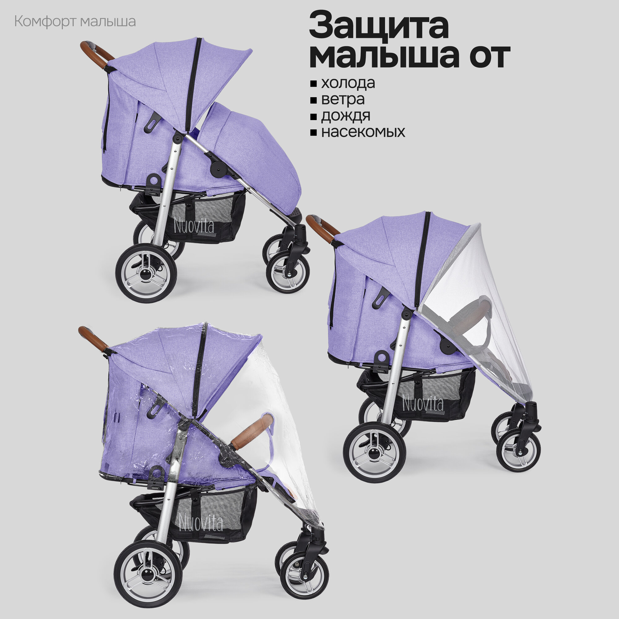 СохранитьКоляска прогулочная Nuovita Corso детская (Сиреневый/Серебристый) интересное: