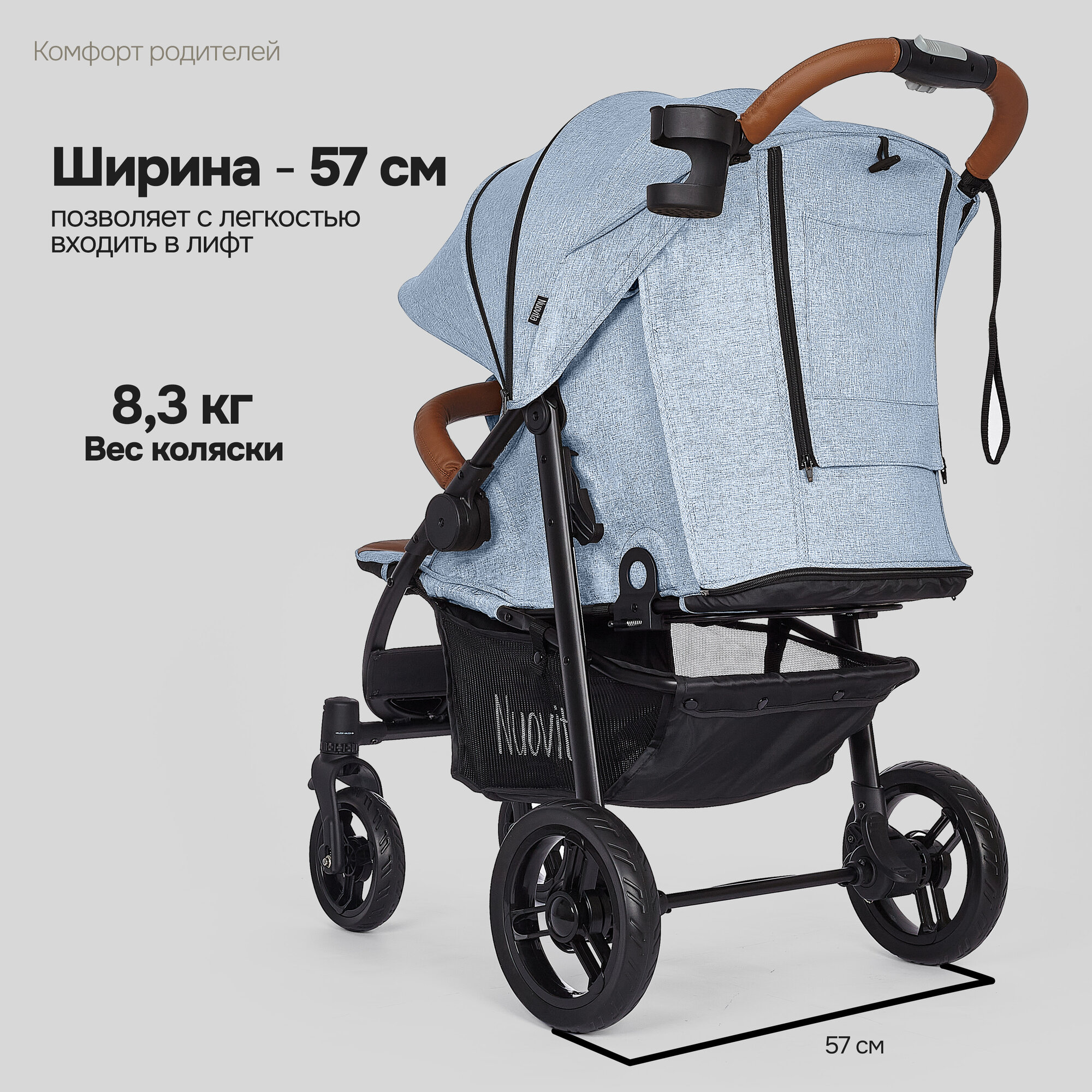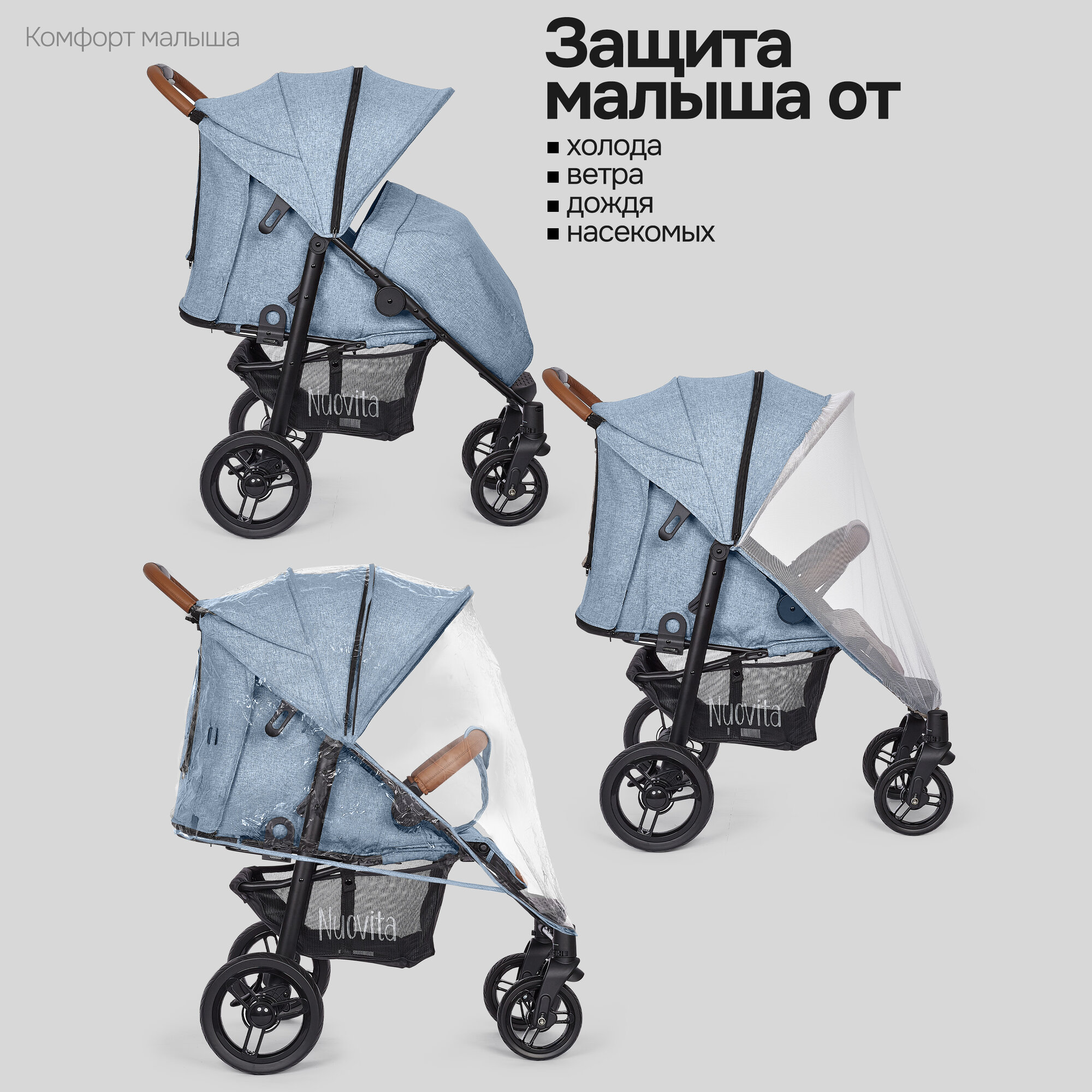 СохранитьКоляска прогулочная Nuovita Corso детская (Джинсовая/Черный) интересное: