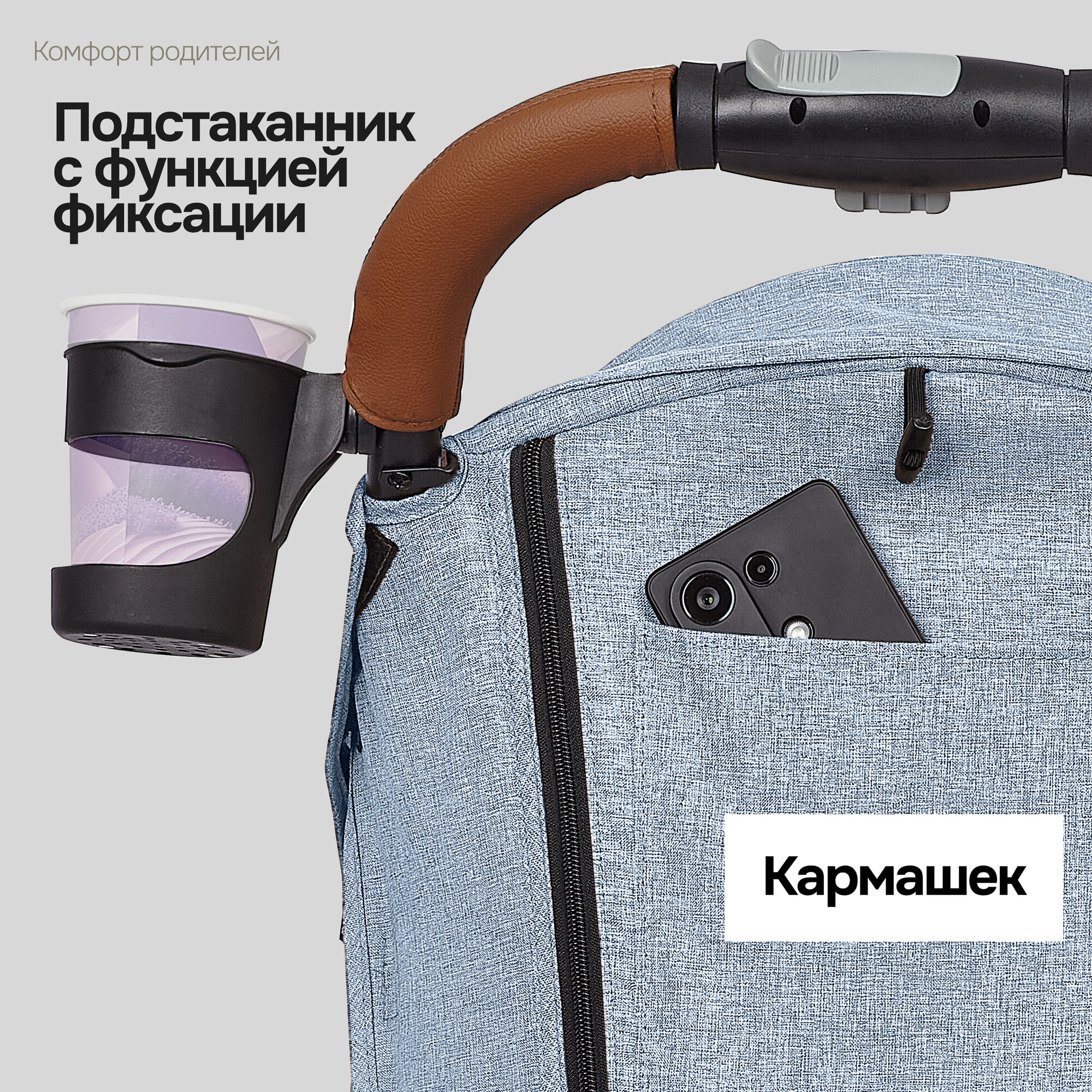 | Комплектация | коляска с прогулочным блоком / накидка на ноги / москитная сетка / дождевик / подстаканник / ремешок на родительскую ручку |
