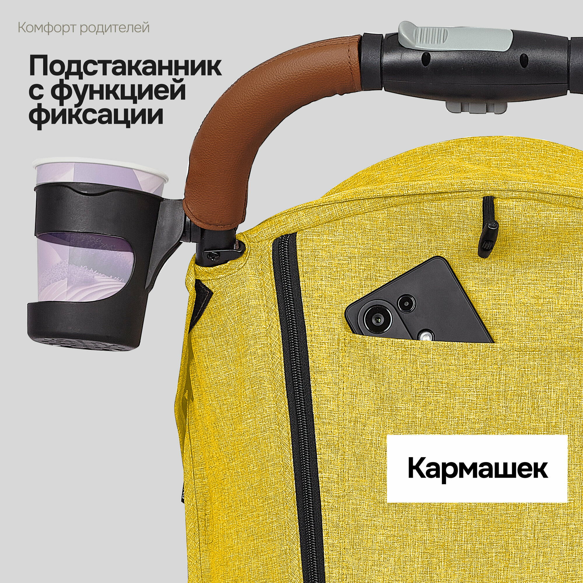 | Комплектация | коляска с прогулочным блоком / накидка на ноги / москитная сетка / дождевик / подстаканник / ремешок на родительскую ручку |