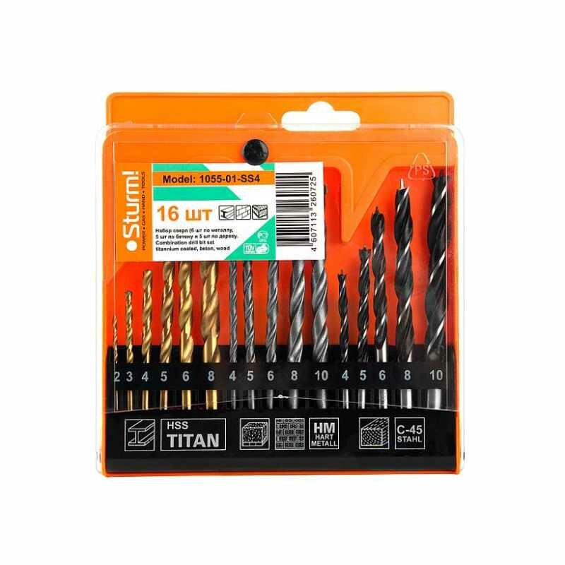 Набор сверл универсальный Sturm! 16 шт (металл/бетон/дерево) (1055-01-SS4)