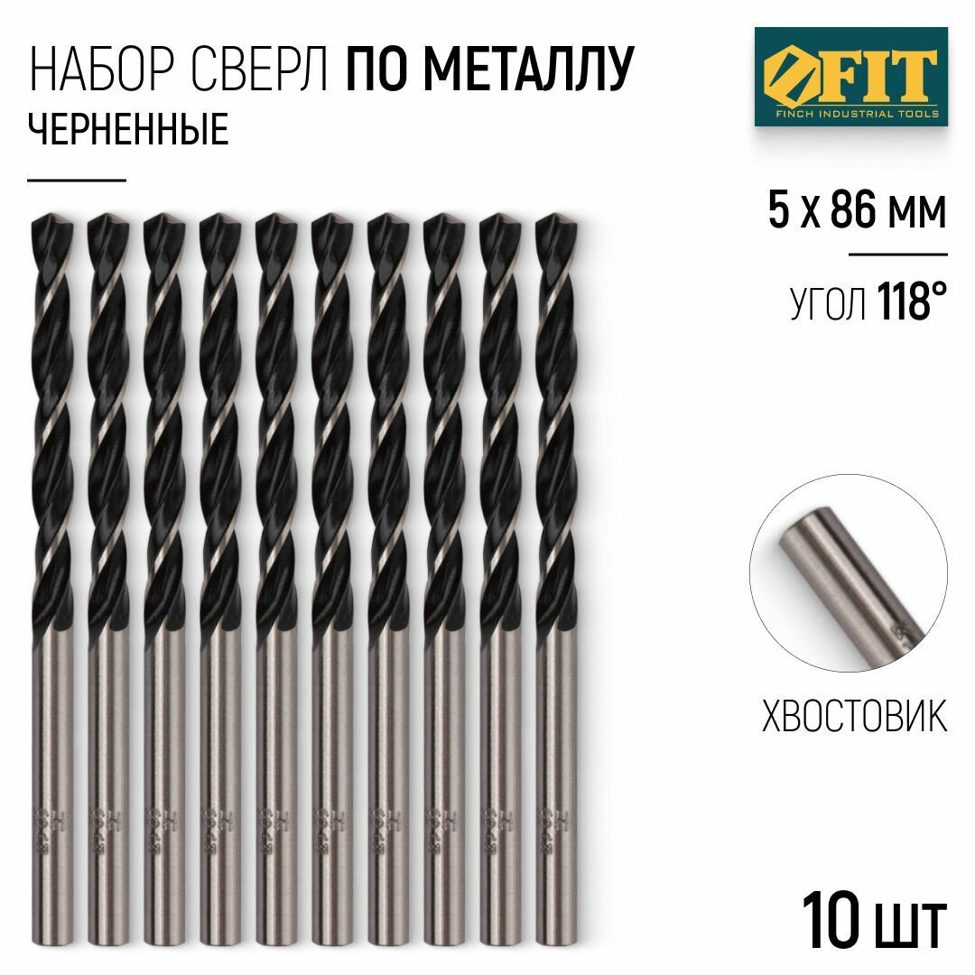 Купить Сверло 10 шт по металлу (5x55х86 мм, HSS) FIT черненые
